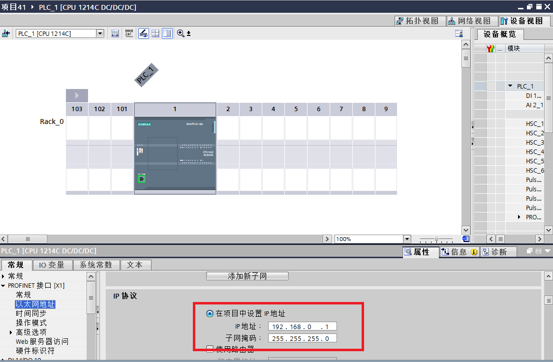 ②點擊添加新子網(wǎng),IP地址要和CPU地址一致,這里1200地址是192.168.0.1