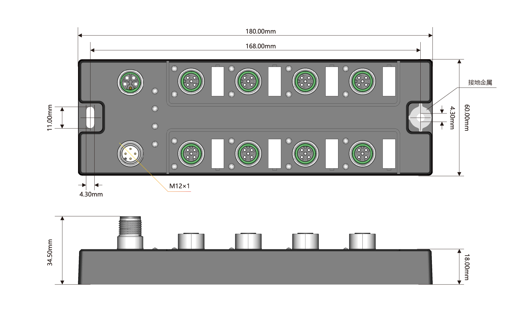 信號接口:8×M12,A-Code,5P孔